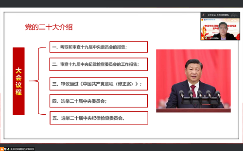 大会第二项,由永利集团团委员工会轮值主席师健航同学领学党的二十大精神。师健航同学首先概论了二十大报告的内容,带同学们回顾了大会议程以及新时代十年的伟大变革,并强调了党的十八大以来,中国共产党勇于进行理论探索和创新,以新的视野深化对共产党的执政规律集中体现为习近平新时代中国特色社会主义思想,要将十九大以及十九届六中全会提出的思想长期坚持并不断丰富发展。
