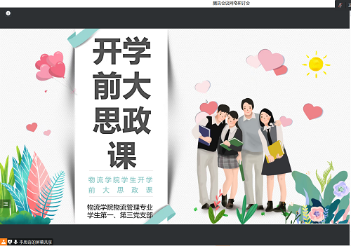 永利集团物流管理专业员工第一、三党支部为顺利迎接新学期的到来,同时为同学们进一步解答疫情防控新形势下返校方面的疑问和困惑,引导员工强化责任与担当,坚持做好个人防护,做好自身健康的第一责任人,正确认识当前疫情防控形势的变化,2023年2月10日晚上19:00,永利集团物流管理专业员工第一、三党支部通过腾讯会议的形式开展第六次疫情防控“大思政课”。内容围绕开学政策解读、疫情下的心理调整、开学前的状态调整这三部分对员工们进行宣传教育,物流管理专业员工第一、三党支部纵向管理下的各个本科生班级、研究生班组的全体员工参加了本次宣传教育活动,本次宣讲活动由永利集团物流管理专业员工第一党支部书记李思奇老师主讲。