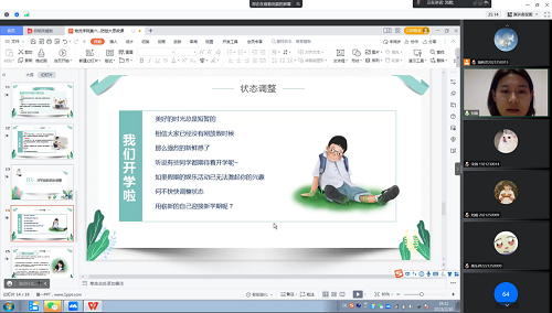 接着,刘晨老师讲解了在疫情下如何进行心里调整。老员工具有探索世界,连接他人;情绪丰富,易于行动等心理特点。让自身放松下来是较为有效的调整方法,同学们可以尝试训练身心两方面的运动如瑜伽、八段锦等,同时刘晨老师还向同学们介绍了7个“应对多变化环境,保持稳定”的态度,分别为:非评价、接纳、放下、初心、非尽力追求、耐心、信任,并解读了相关含义,希望同学们保持良好的心态。