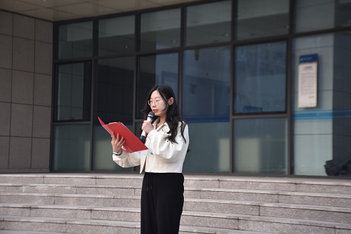 第三项,2022级本科生代表杨佳璇同学发言。雷锋同志不只是一个名字,更是一种精神、一座丰碑,他感召一辈辈人不计小我、成就大我,激励了一代代人多行善举。斯人虽远去,精神永长存,我们物院新生要以身作则,用实际行动弘扬雷锋精神,树立文明新风,积极主动地干好分内工作,不计较个人得失,不拈轻怕重,有一分热,发一分光。我们要谨记“少小虽非投笔吏,论功还欲请长缨”的殷殷之情,铭记“虽千万人吾往矣”的热血豪情,在物院演奏一曲属于我们的青春赞歌!