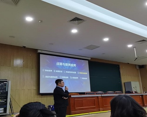 宣讲会上,万纬物流南京战区总经理王龙与同学们分享了自身职业发展经历和自身成长感悟,介绍了万科集团与万纬物流的经营业务、历史发展、社会责任,讲述了集团创始人王石先生及员工日常活动中万科充满活力与热情的企业文化。王龙总经理聚焦物流行业特别是冷链物流领域在国内外的发展成果,详细科普了“端到端”韧性供应链、“三大科技平台”等知识,王龙总经理表示“我们相信,物流不仅规模大、前景好,而且常做常新、生生不息、穿越周期”。