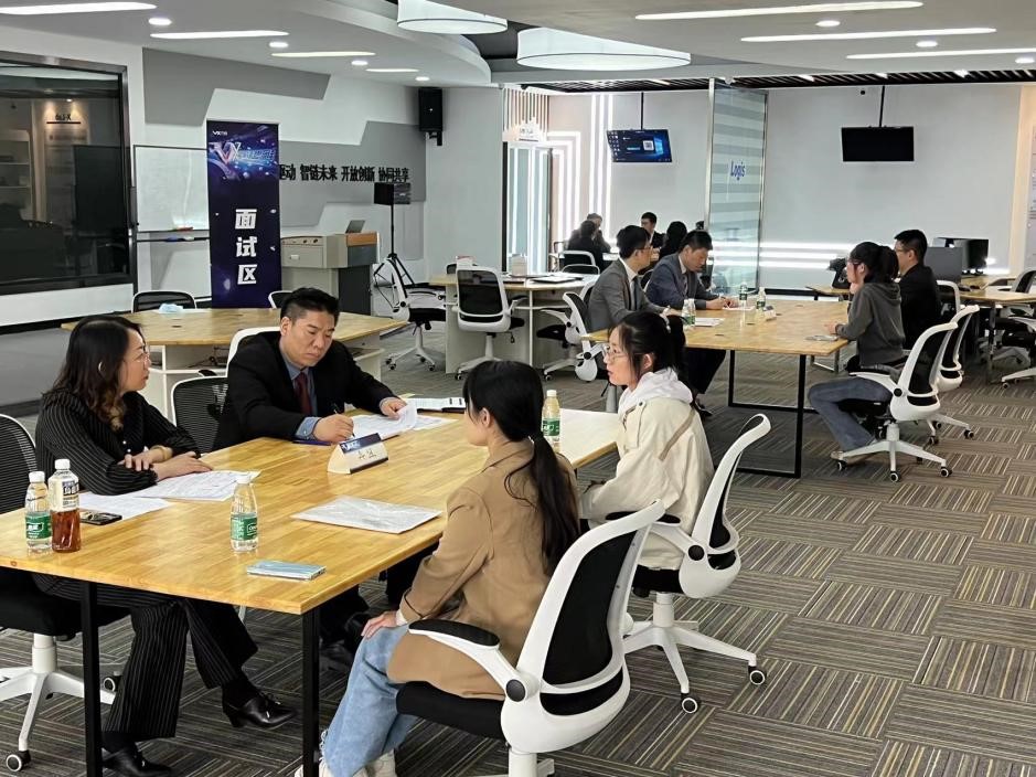万纬冷链北京战区负责人丁云志、北京亦庄园区总经理李伍会、总部质量安全负责人周雅琳、北京战区人力资源负责人苗旭、廊坊园区人事经理李艳波和万纬总部校招负责人张蕑等来校为2024届近30位本科生和研究生面试。同学们首先进行了自我介绍,接着面试官针对同学们的自我介绍和成长经历提出问题,双方深入交流。同学们针对就业、职场等提出的的具体问题,面试官也进行耐心解答和引导。