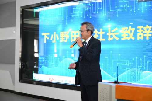 在主持人宣读了2022年、2023年NX国际物流奖学金获奖名单以及第五届NX国际物流班员工名单后,下小野田恒社长用中文对同学们提出好好学习、为物流行业做出贡献的殷切希望。