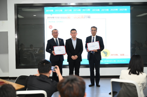 随后,姜旭经理为松尾纯利总括、下小野田恒社长颁发了客座教授证书。