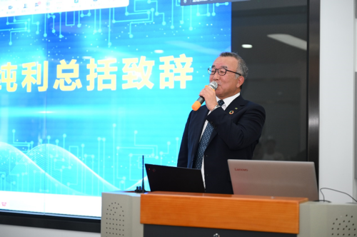 NX国际物流东亚总部总括松尾纯利在随后的致辞中深情回顾了十年间自己与物资学院的交流往来,并向与会同学和老师们介绍了公司目前规模和名字、标志的变更和寓意,鼓励同学们在只有一次的人生中,勇敢地尝试,不负韶华。他希望通过与物资学院的合作,培养更多的物流人才,为物流行业、社会发展做更多的贡献。