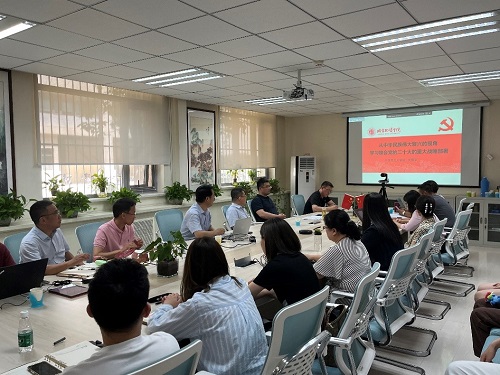 2023年6月7日下午13:00,公司党委在112会议室召开理论学习中心组(扩大)学习会,会议邀请马克思主义学院刘耀京教授作《从中华民族伟大复兴的视角学习领会党的二十大的重大战略部署》专题报告。公司领导班子、党委委员、党风廉政监督员、教工党支部书记、党务秘书(兼职组织员)、员工党支部书记(辅导员、研究生)、员工党支部副书记参加了本次会议。会议由公司党委副书记孙涛主持。