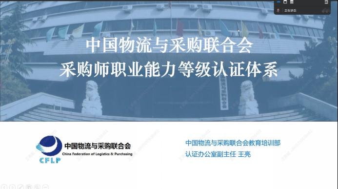 王燕妮老师首先对中国物流与采购联合会的情况进行了简要介绍,并对王亮主任百忙之中为采购管理专业员工做专题讲座表示欢迎和感谢。接下来,王亮主任围绕采购师职业能力等级认证体系为同学们做专题讲解。