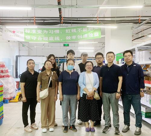调研伊始,叮咚买菜负责人公共事务副总裁安琪对各位老师以及员工的到来表示热烈欢迎,并为其讲述了叮咚买菜的运营现状,运营模式,分布区域以及配送方式等。随后在安琪副总裁的引导下,老师及员工进入叮咚买菜的前置仓进行参观,分别对常温区、冷藏区和冷冻区进行细致观摩,同时对前置仓模式下店员的拣选过程以及骑手的配送过程进行了详细的了解。安琪副总裁还为老师以及员工展示叮咚买菜的溯源技术,并向其介绍叮咚买菜的自有品牌和全新产品,推动老师和员工进一步了解企业的技术和产品发展。
