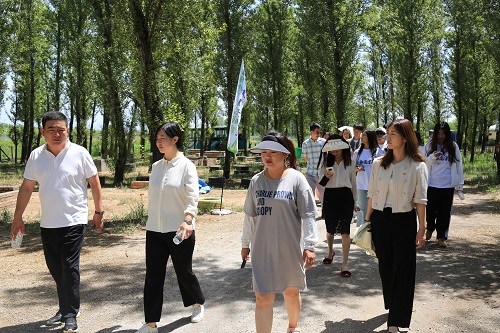在调研完二堡子村德胜农场后,团队成员在乡政府干部的带领下来到了萌兔部落。萌兔部落是集“自然”、“乐趣”、“研学”为一体的户外亲子乐园,主要以倡导“自然教育”为业态,让体验者在自然生态体系下接受劳动教育。主题乐园分为露营基地区、亲子乐园区、夏冬令营体验区、滑步车体验区、亲子美食区、萌宠乐园区六大功能区。
