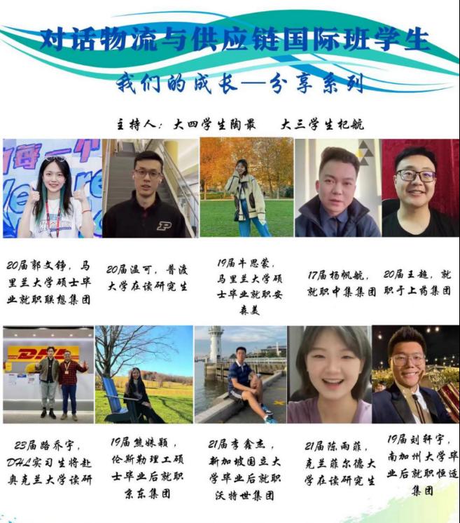 接着,该项目的优秀毕业生们分别就一系列主题包括项目选择初衷、就业或出国深造历程、项目优势、供应链发展等问题进行心得分享。他们结合自身学习和工作经历,生动地为即将进入国际班学习的同学们展现出即将到来的丰富老员工活以及面临的挑战。
