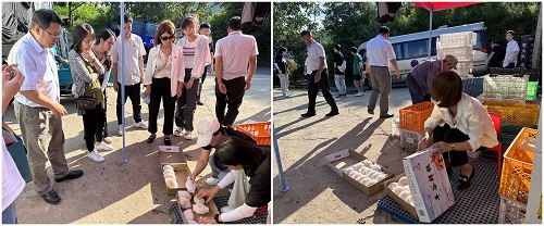 首先,物院学子深入田间地头,把课堂学习和乡村实践紧密结合起来,充分了解梯子峪村目前在农产品种植与销售方面所面临的困境,就梯子峪村产业链发展和规模化种植等问题进行讨论,并对此提出合理化建议。同时,实践团队在员工凡皓的带领下,来到公司产学研合作基地,深入果园,了解大桃的生长状况,切身体会采摘场景;参观梯子峪村农产品仓储、冷链物流等配套设施,亲身体验大桃的分拣打包过程。实践活动的开展为员工提供了从生鲜农产品的采摘存储、包装加工到冷链运输全供应链的实践机会,通过积极参与劳动实践,深刻体验农业生产的艰辛,感受一分耕耘、一分收获的踏实与满足。