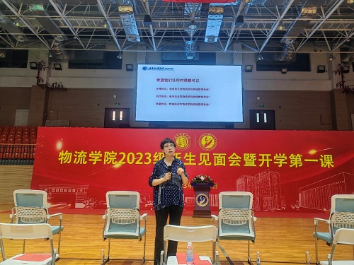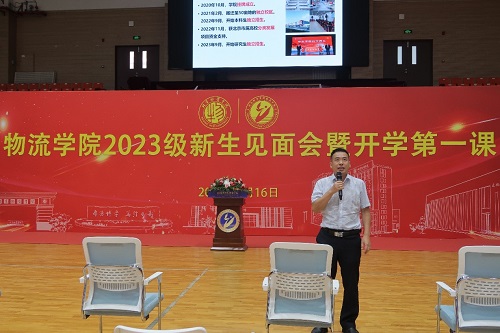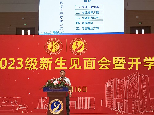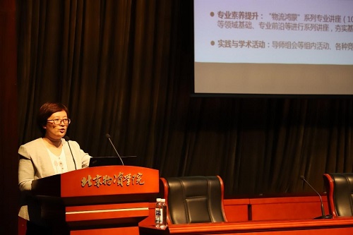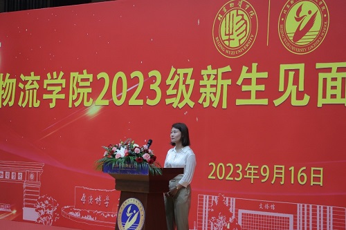 物流管理专业教研室主任段倩倩老师向新生们介绍了物流管理专业发展现状和近年来取得的成绩,详细地阐述了物流管理专业的课程设计及培养方式。