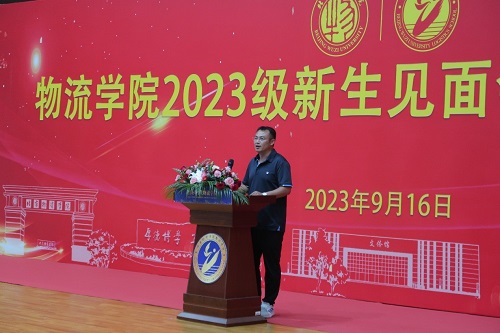 随后,进行新生“励志”教育环节。北京市顺义区统计局党组书记、局长武捷作主旨发言,他首先向同学们讲述了自己校园时光、奋斗历程和职业发展等。随后,向同学们分享了有关物流行业的一系列数据和趋势,强调物流行业增长势头迅猛,前景十分广阔。特别是在疫情期间物流行业成为国家和市场运行的命脉,具有极端重要性。他鼓励员工们积极追求自己的兴趣和梦想,将个人目标与国家的发展目标以及人民对美好生活的向往相结合,为实现自己的梦想而努力奋斗。最后,武书记祝愿新生们在老员工活中都能喜获成功、成长成才,为物流行业的繁荣贡献力量。