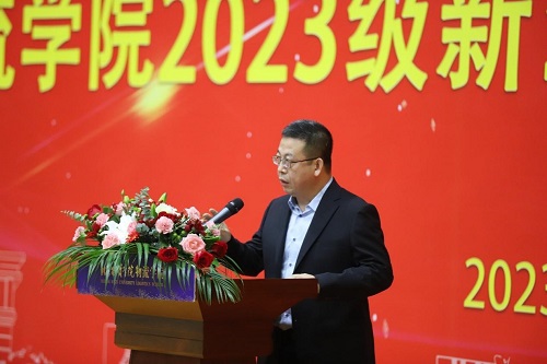 党委副书记孙涛对全体新生同学提出三点期望。第一,希望同学们在步入新校园开始新生活的时刻,做到自律自省、立德修身,摒弃极具诱惑的快餐文化,潜心学习钻研系统性的专业知识。第二,学习是一件需要持久韧劲的事情,希望同学们持之以恒、潜心向学、不断进取,争取成为让自己满意、让社会需要的人。第三,希望同学们志存高远,大学期间切勿贪恋一时的舒适,务必紧张起来,敢于自找苦吃,奋力追求理想,坚定面对挑战,成为一名心怀“国之大者”的新时代优秀青年。