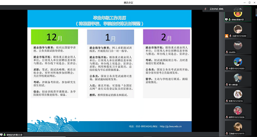 了解就业形势,讲解就业政策。班主任老师依据各专业特点及班级优势,积极发挥专业班主任教师对员工的指导帮扶作用,系统地对就业政策、就业流程及就业过程中可能遇到的困难进行一一解读和答疑,有效推动了学院就业指导和就业促进工作的开展。针对考研复试和调剂的同学,班主任鼓励同学们积极调整心态,认真备考备调,保持和老师的经常性有效沟通,及时寻求帮助并主动掌握考研调剂以及复试面试技巧,做到有备无患。