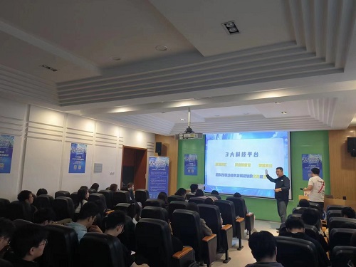 随后,员工代表袁敏学姐结合自身真实经历,向同学们分享了自己的入职体会及感受,让同学们更直观地感受到万纬物流的企业文化、培训体系以及发展前景。