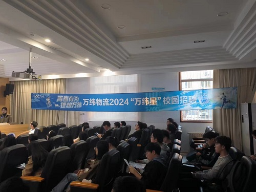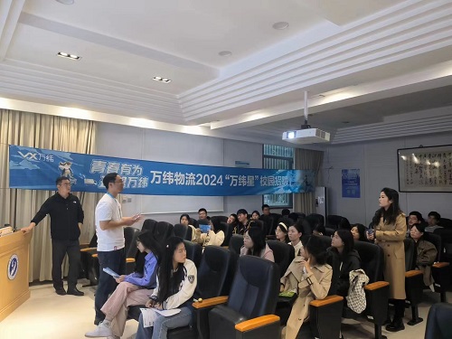 宣讲会上,万纬物流公司负责人向公司毕业生们介绍了其公司的综合实力、历史发展、经营与服务业务、市场现状、福利体系、需求岗位、业务架构、未来发展方向等内容,他希望公司毕业生们能够把握机会、抓住机遇,了解岗位信息,并根据自己的求职意向进行选择,积极寻找匹配岗位。