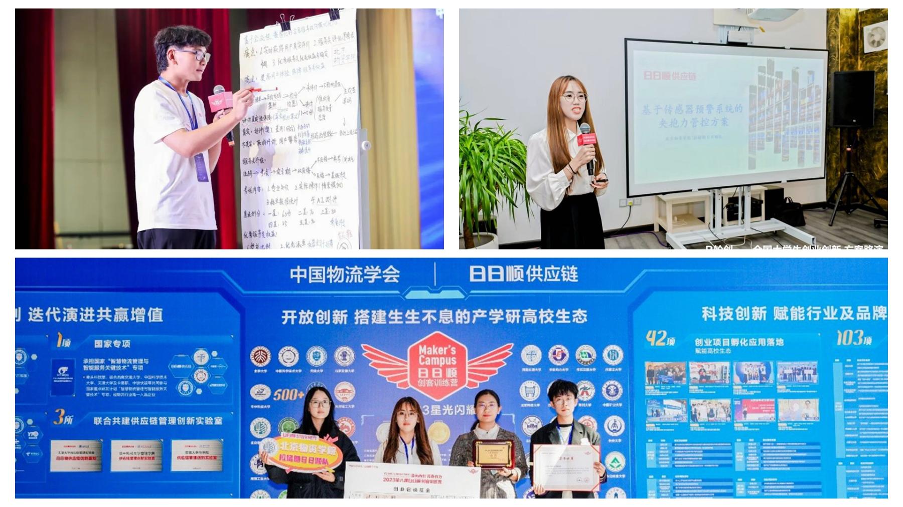 作为本项赛事的校内承办单位,永利集团于2023年6月正式组织开展校内训练营种子集选拔赛。在历时近半年的训练营活动中,参训的各位同学与指导教师紧密围绕供应链设计、智慧物流与场景物流三大赛题模块,进行了热烈讨论与细致分析,坚持问题导向,注重企业需求的把握,形成了多个高质量的参赛方案。暑期“天使学”集训营期间,公司创客团队提出的《基于物流作业场景的夹抱力管控方案》与《基于数字化的众包服务模式优化迭代》两项方案受到现场企业导师的高度认可,并由物流管理专业的苏佳航和物流工程专业的丁越两位同学作为代表进行了优秀方案展示。后续历经训练营“A轮研”“B轮创”及“C轮训”三关考验,最终“拉格朗日日顺队”提交的《基于传感器预警系统的夹抱力管控方案》斩获金奖!该项目方案以物联网和预警技术为主要手段,搭建了全流程的夹抱力管控方案,实现夹抱力合理阈值的精准确定和实时监测,同时借助预警系统对应急状态及时响应,保障夹抱作业质量,减少货损,可持续地赋能企业生态。项目团队也凭借精彩的路演表现和富有创新性、落地性的方案内容获得了专业评委的指导和赞赏,并受邀在中国物流学术年会“C轮训”环节进行了公开路演。