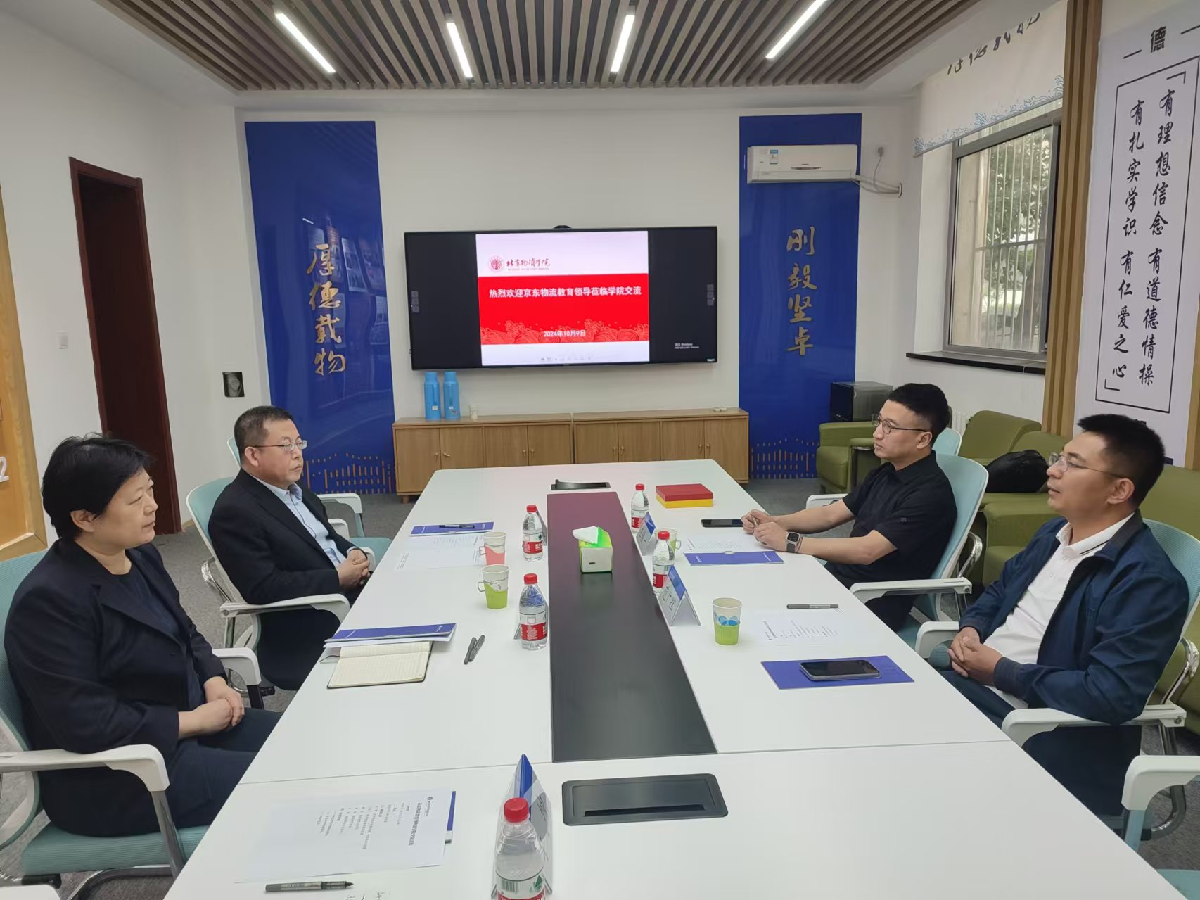 10月9日下午,京东物流教育总经理、京东物流研究院经理范广辉,京东物流教育副总经理王精一到访永利集团。公司党委书记郝庆,党委副书记、经理姜旭热情接待了范广辉一行。