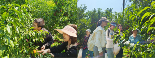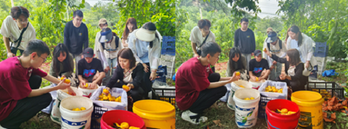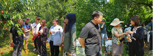 活动中,物院学子亦是志愿者,深入田间地头,把课堂学习和乡村实践紧密结合起来。员工凡皓指出要充分了解梯子峪村目前在农产品种植与销售方面所面临的困境,就要对梯子峪村产业链发展和规模化种植等问题进行讨论,并对此提出合理化建议。于是实践团队在凡皓的带领下,来到公司产学研合作基地,深入果园,了解蟠桃的生长状況,切身体会采摘场景;参观梯子峪村农产品仓储、冷链物流等配套设施,亲身体验蟠桃的分拣打包过程