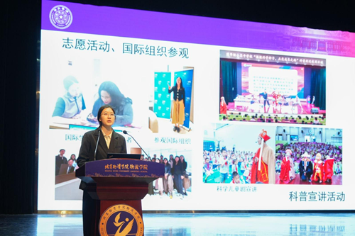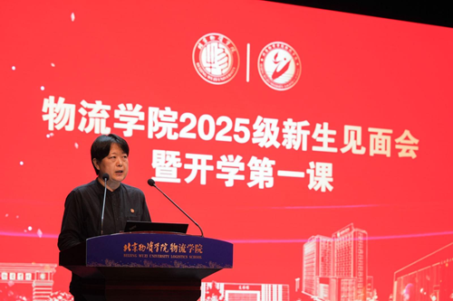 经理姜旭的介绍环节别开生面,以一段极具现场感的全景式纪实影像拉开序幕。镜头真实记录了姜旭经理深入顺丰速运网点,亲身体验“快递小哥”日常工作一线的全过程。视频中经理身着工装,进行快件分拣、装载运输、末端派送等全流程操作,在一线场景中切身感受现代物流的运作细节与行业脉搏,系统阐释“扎根行业、服务产业”的教学理念。教学副经理褚东亮围绕学院人才培养体系与教学创新成果进行报告,重点介绍了“厚基础、重交叉、强实践”的培养理念,详细解读了以智慧物流为特色的课程体系及项目式学习机制,鼓励新生主动建构学科知识体系框架,在数字化浪潮中锤炼核心竞争力。