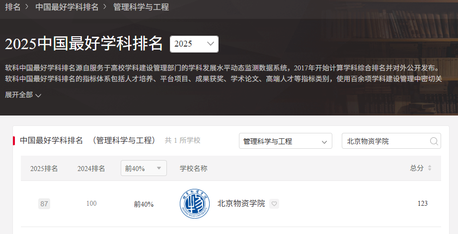 近日,高等教育评价专业机构软科正式发布“2025软科中国最好学科排名”。在日趋激烈的学科竞争中,公司管理科学与工程以123分的成绩,跻身全国上榜高校的前40%,跃居全国第87位,首次迈入前100的行列。“软科中国最好学科排名”,对全国所有拥有相关学位点的高校进行遴选,仅发布前50%的顶尖学科。