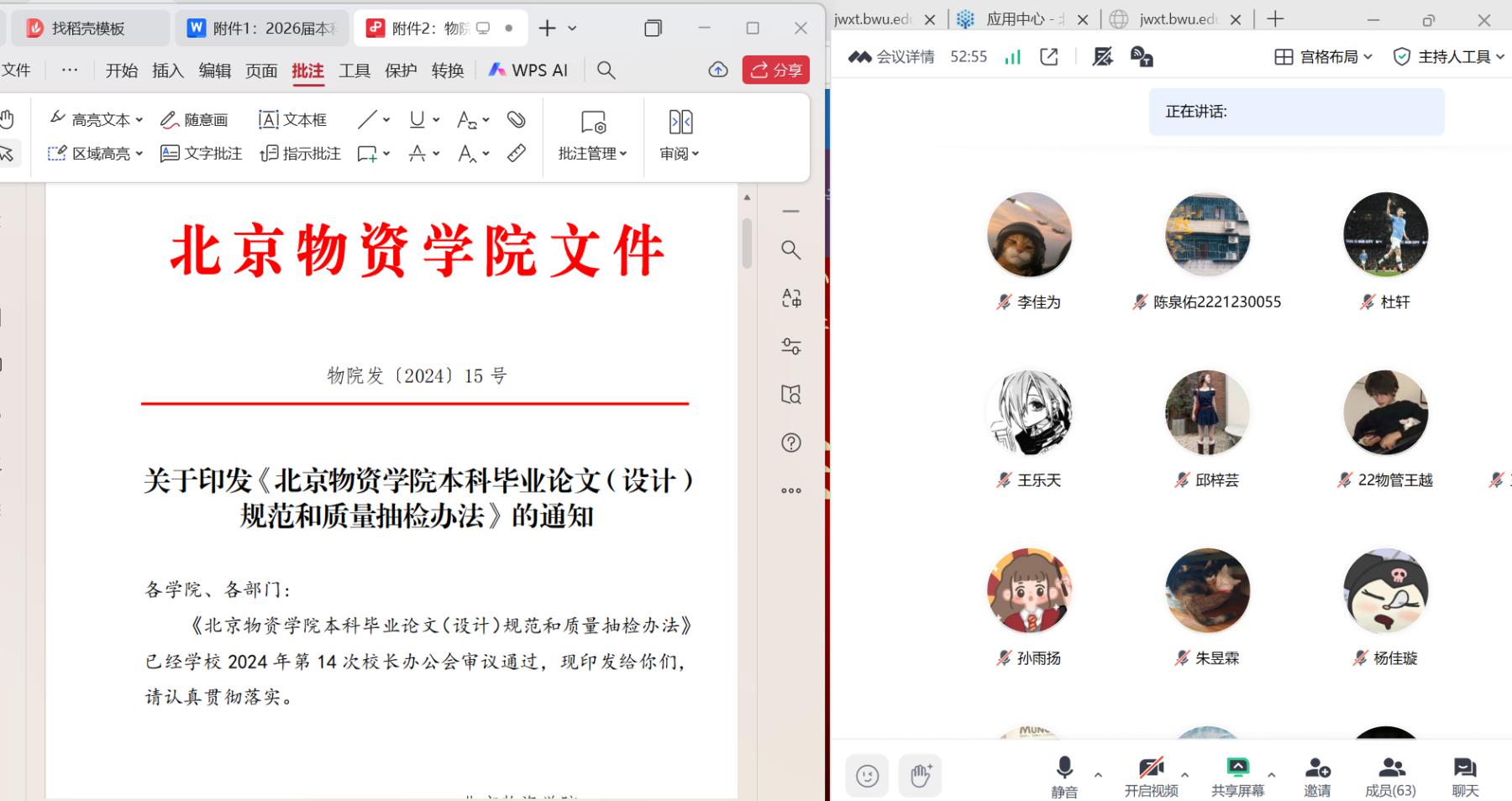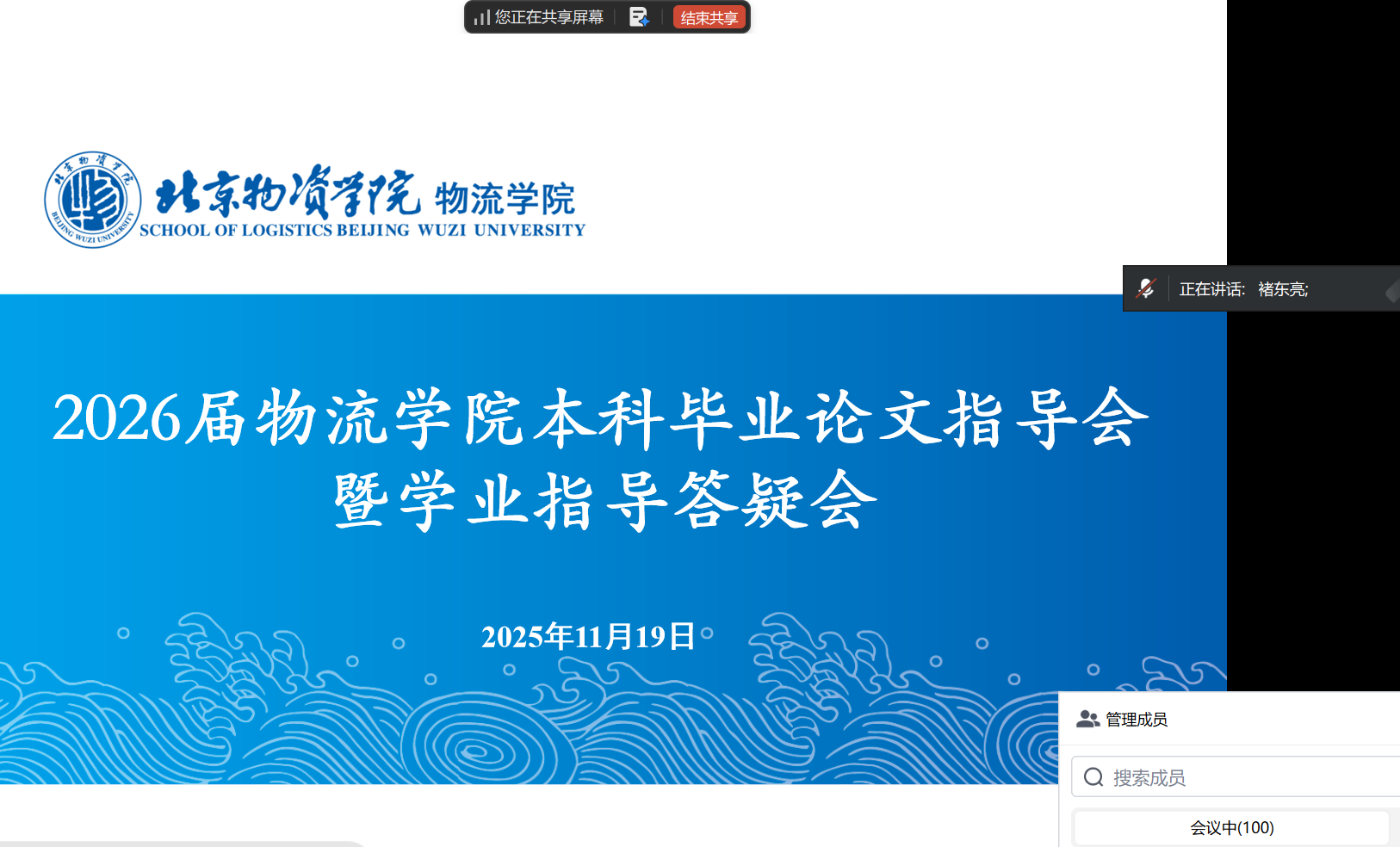 2025年11月19日下午15:00,永利集团在腾讯会议召开2026届本科生毕业论文指导会暨学业指导答疑会,2026届各专业员工,2023级商务英语专业(辅修)员工、2024级物流管理(辅修)专业员工参会。