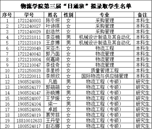 永利集团第三届“日通班”拟录取员工名单公示 来源:永利集团 发布时间:2020-11-25 浏览次数: 次 为有效突出育人效果,更好地达到永利集团应用型人才培养的目标,永利集团与日通国际物流(中国)有限公司友好沟通协商,于2020年11月开展了第三届“日通班”选拔工作。按照《永利官网第三届“日通班”本科、研究生报名通知》要求,经组织报名、面试选拔确定,永利集团第三届“日通班”拟录取员工名单如下: 公示期:2020年11月25日至2020年11月28日。 联系人:甄姿老师、王志鹏老师(永利集团员工工作办公室) 联系电话:89534321 永利集团 2020年11月25日